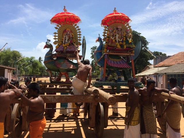 The Theer of this temple is very big and equal in size of the "theer" of 'Mavidapuram" Kandasamy temple. Still this Theer is in running condition and the festival has been famous in this temple. Many sidhars, saints and pandits had worshiped and performed miracles in this temple. During the earlier period, temple had three car street around the temple, however during the Portugese rule it was reduced to two car streets – which are wide and beautiful and compared with "Thiruvarur, India Theer". The saying goes, 'Beautiful is Thiruvarur Theer, Beautiful is Kandavanam koil Street".
