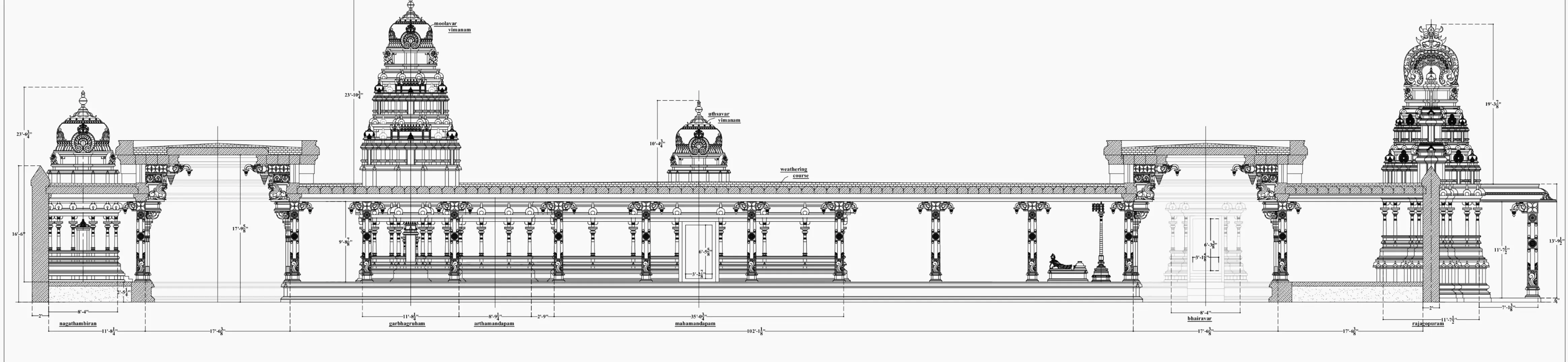 The grand temple is a large undertaking to build a permanent home for Shankmukar that stands the test of time. Currently, our focus lies on the mulasthanam, but our ultimate goal is to complete similar grand constructions for the parivara murthis. The mandapams will be completed, followed by the rajagopuram.